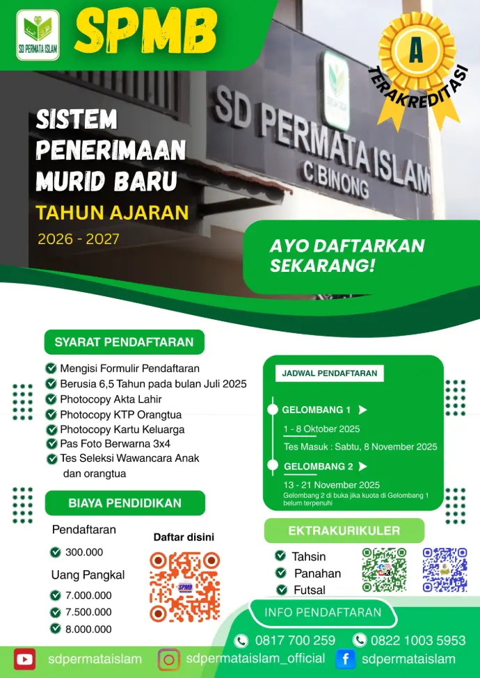 - Daftarkan diri via Online atau datang langsung ke Sekolah